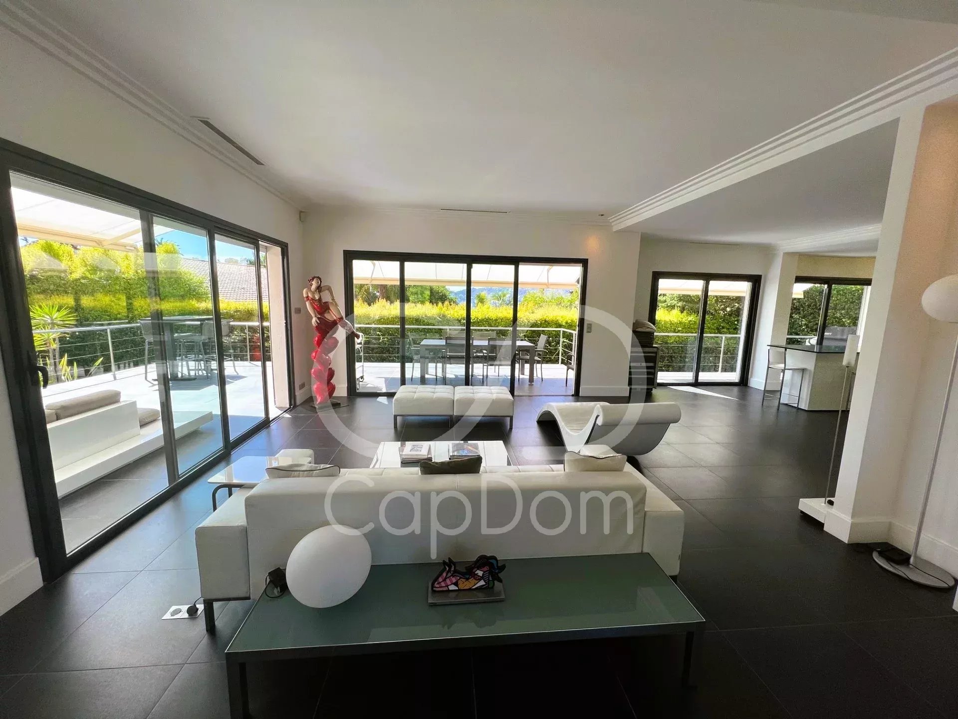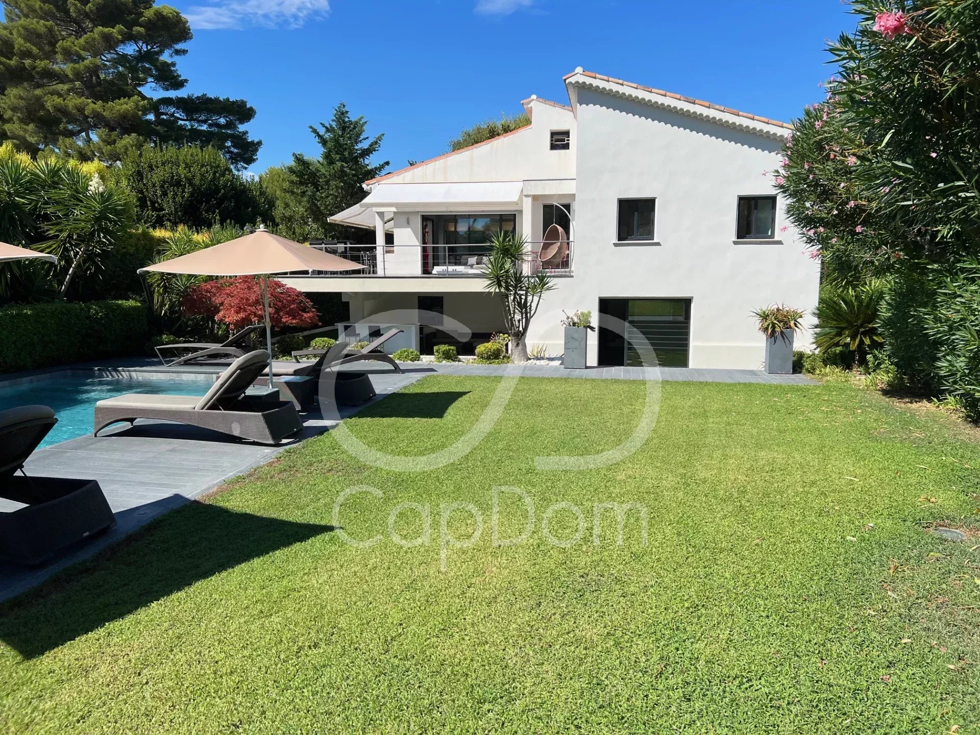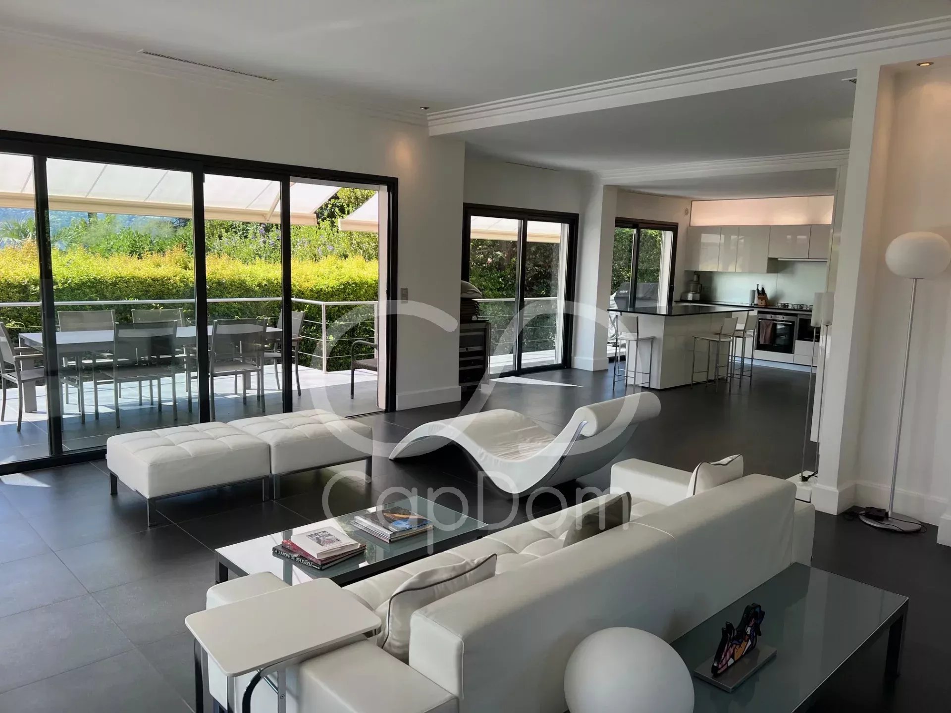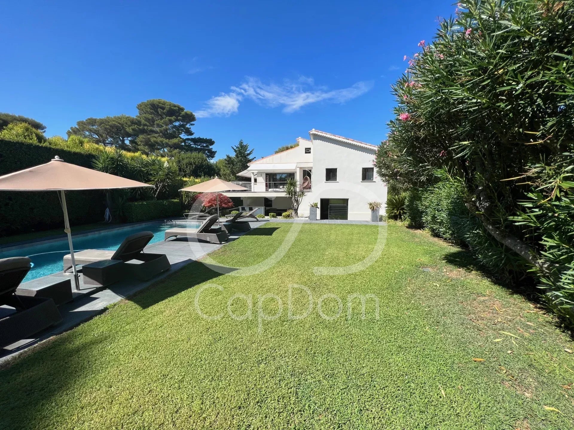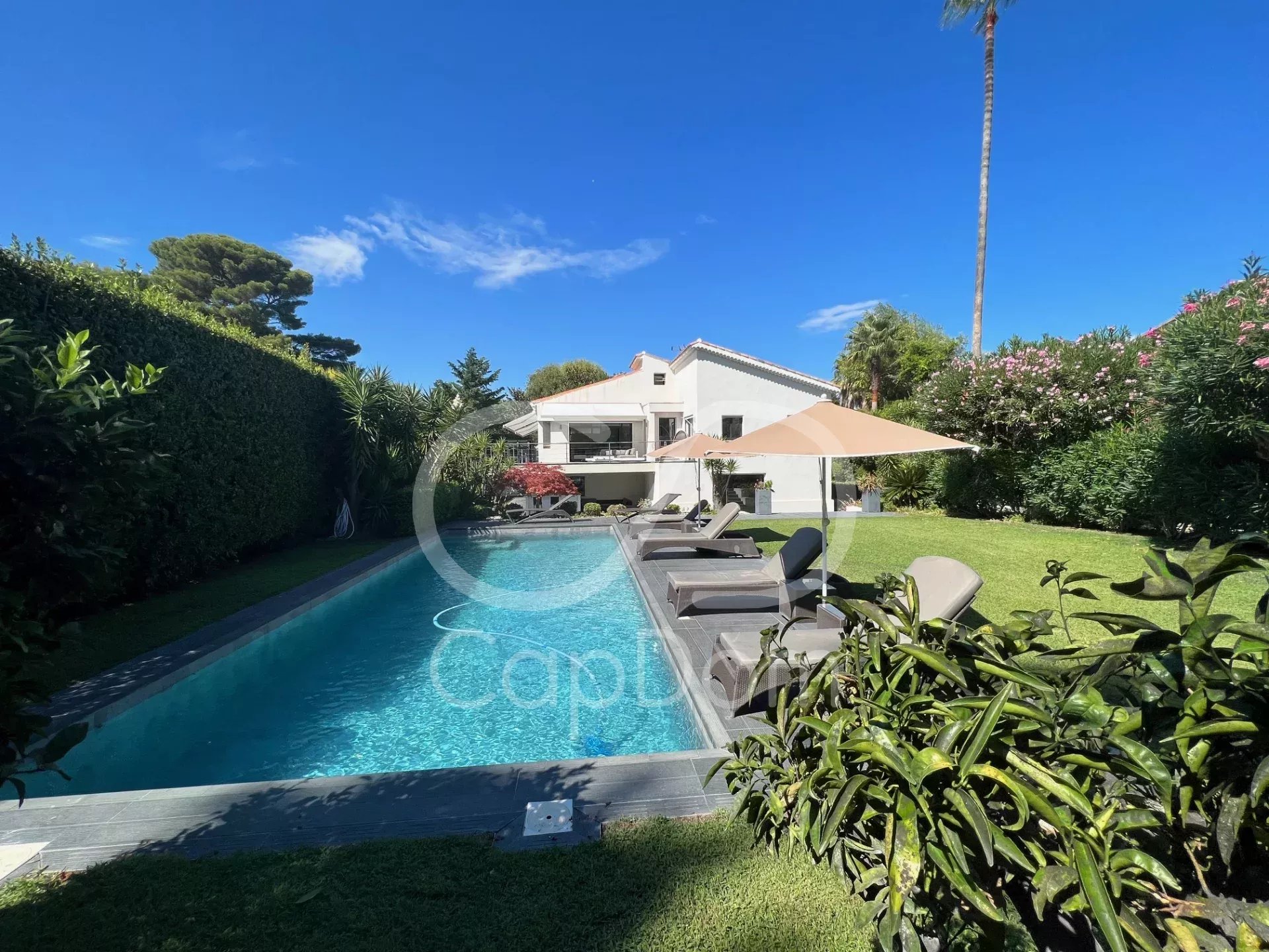 Cette villa moderne d’environ 275 m2 est située dans un domaine fermé dans l'un des quartiers les plus prestigieux de l'Ouest du Cap d'Antibes. La villa bénéficie d'une longue vue sur verdure et petit vue mer. La villa a été rénovée avec des matériaux de qualité. Un beau jardin paysagé avec piscine chauffée et cuisine d'été entoure cette propriété. Plage à pied.