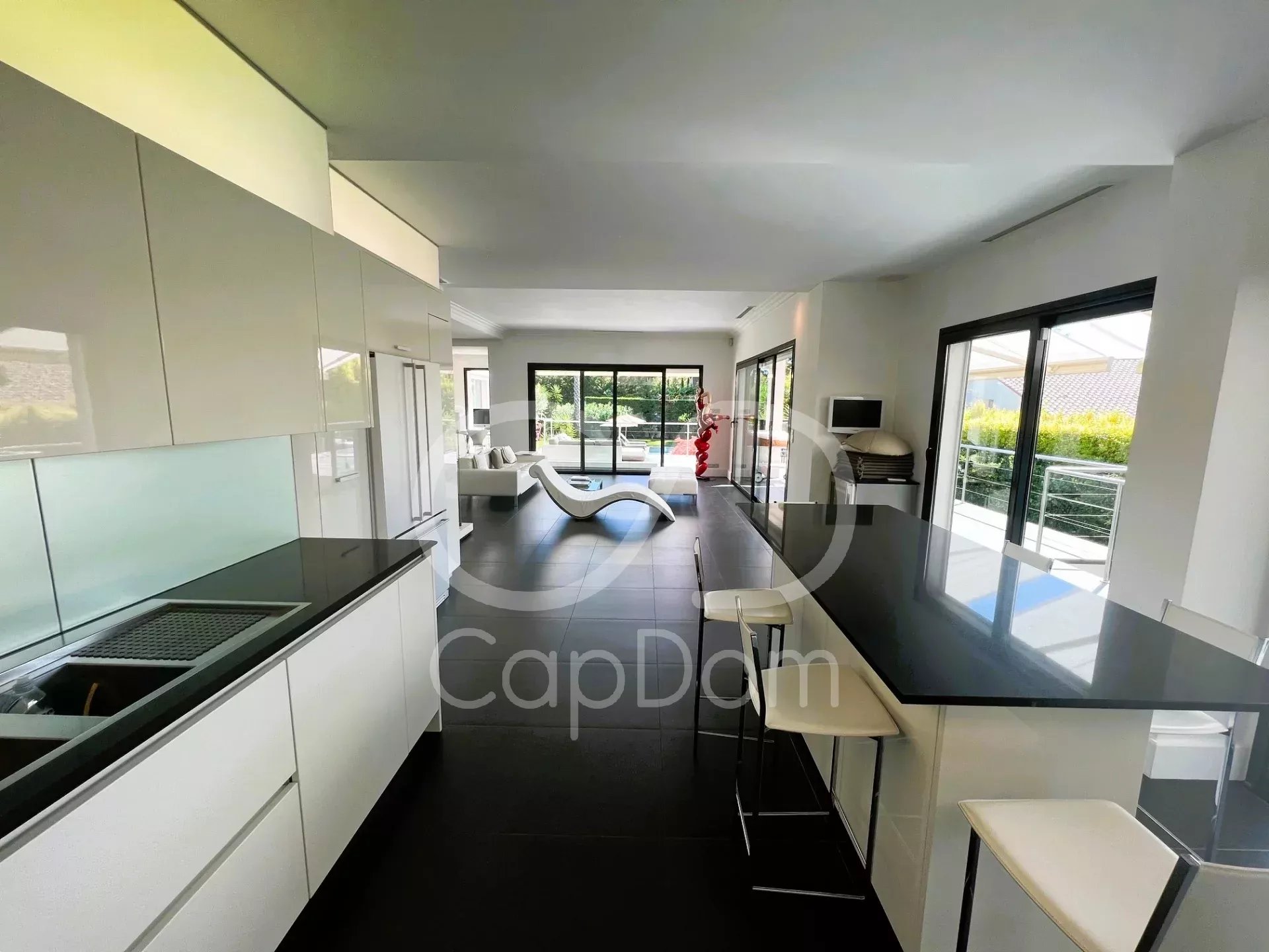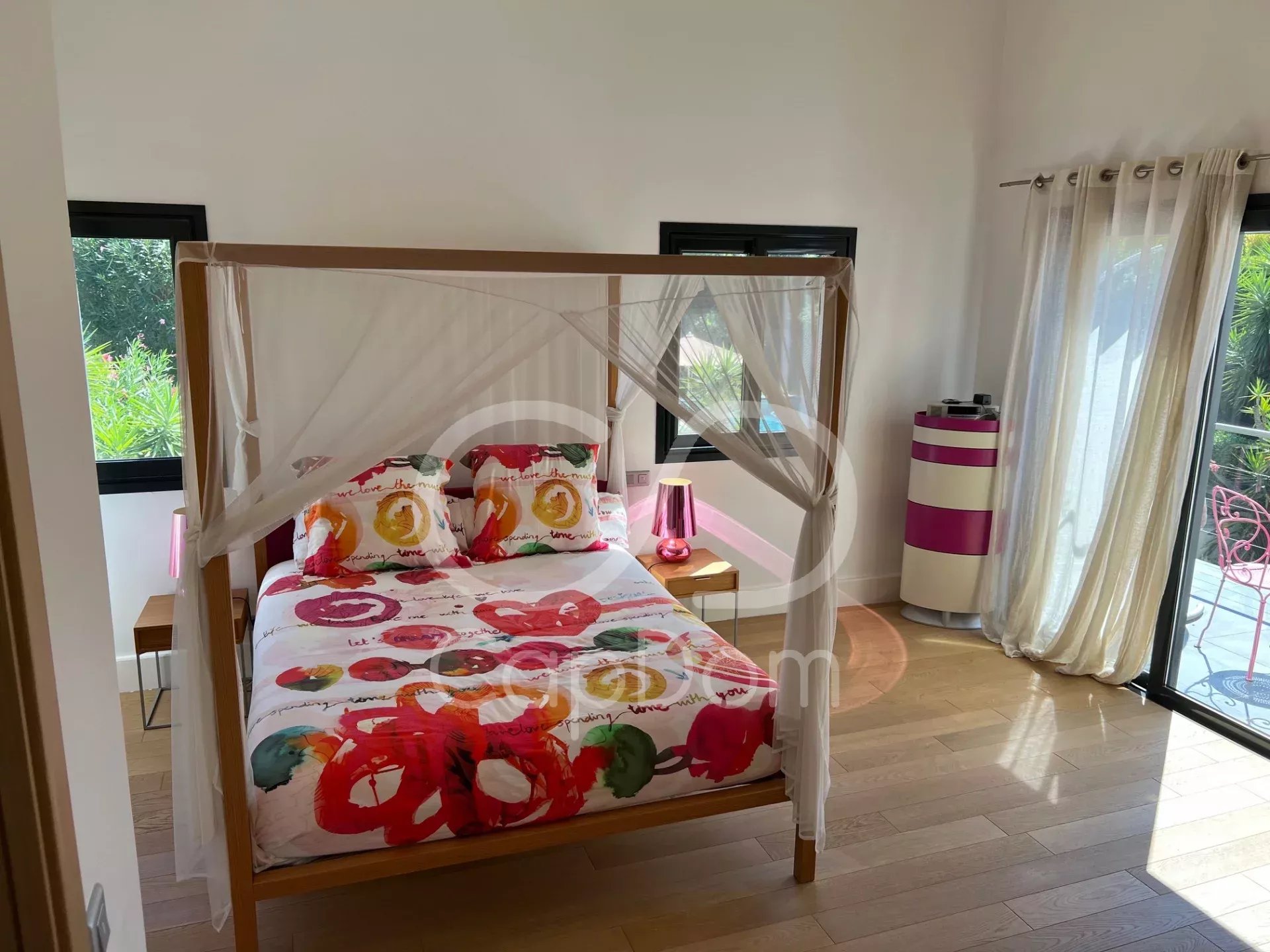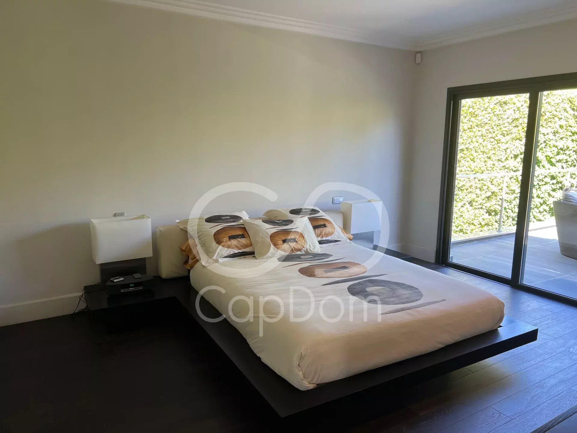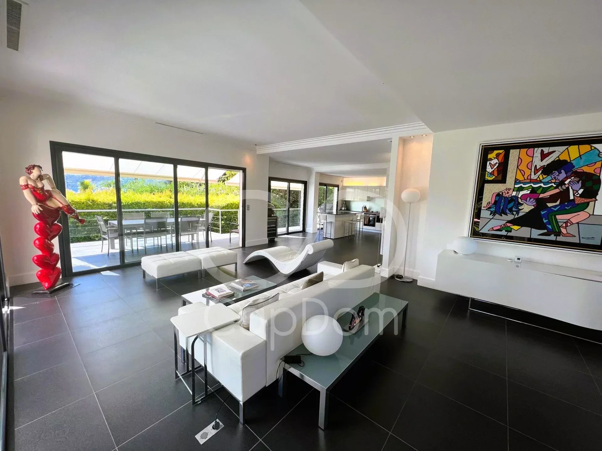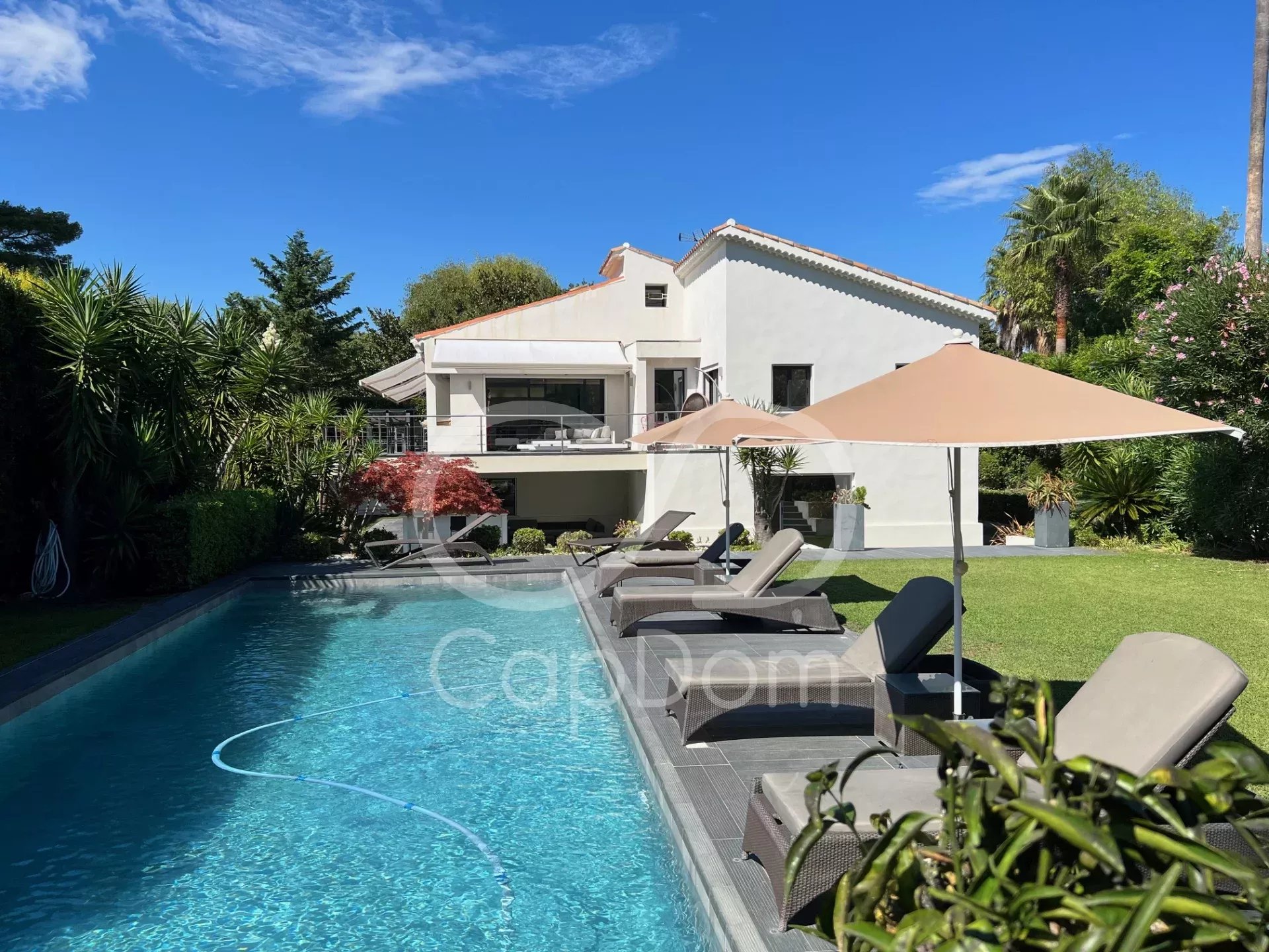 Cette villa moderne d’environ 275 m2 est située dans un domaine fermé dans l'un des quartiers les plus prestigieux de l'Ouest du Cap d'Antibes. La villa bénéficie d'une longue vue sur verdure et petit vue mer. La villa a été rénovée avec des matériaux de qualité. Un beau jardin paysagé avec piscine chauffée et cuisine d'été entoure cette propriété. Plage à pied.